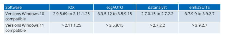 emka TECHNOLOGIES software versions are compatible with specific versions of Windows.